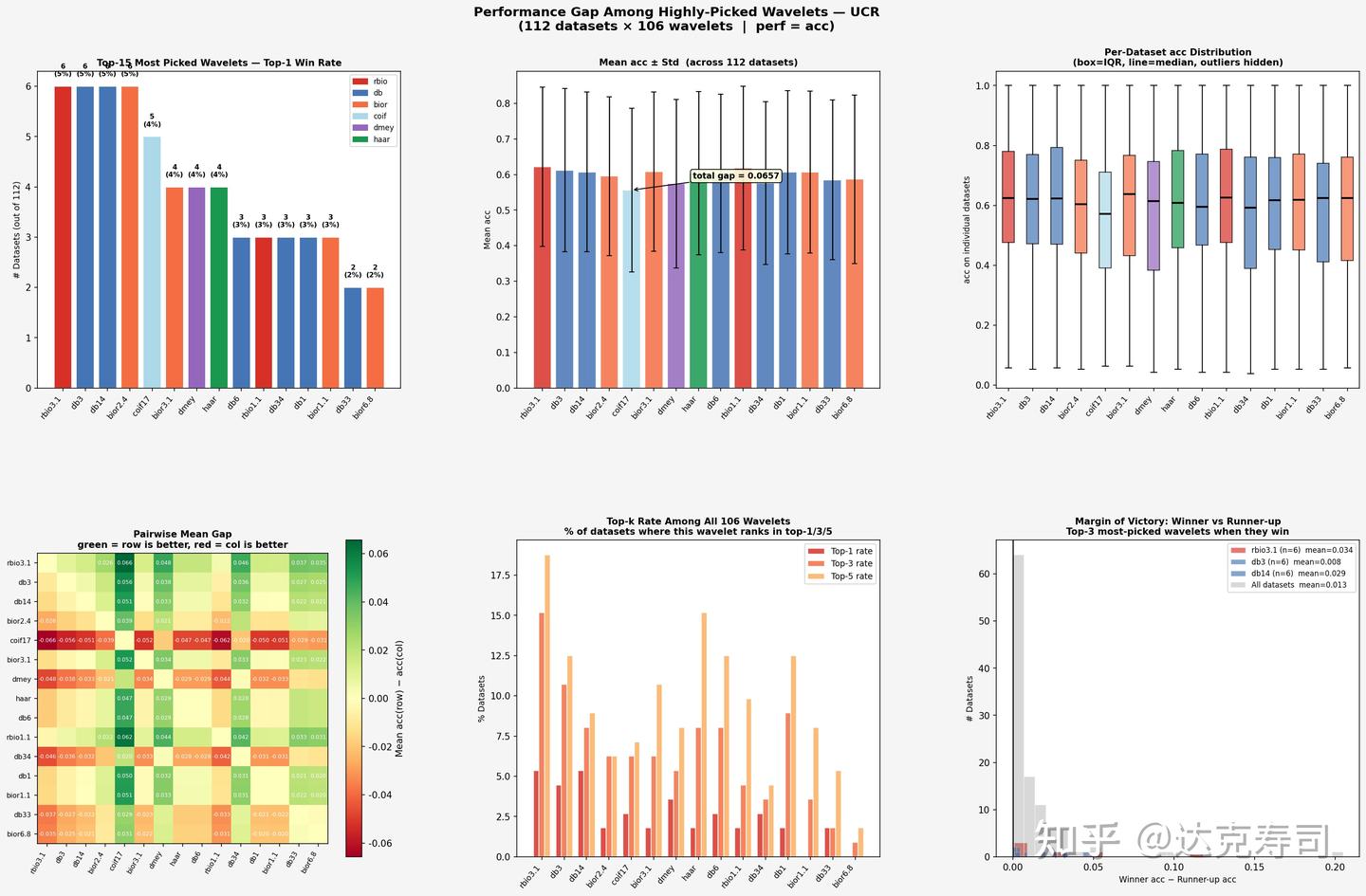 True-performance gaps among top-ranked wavelets (UCR)
